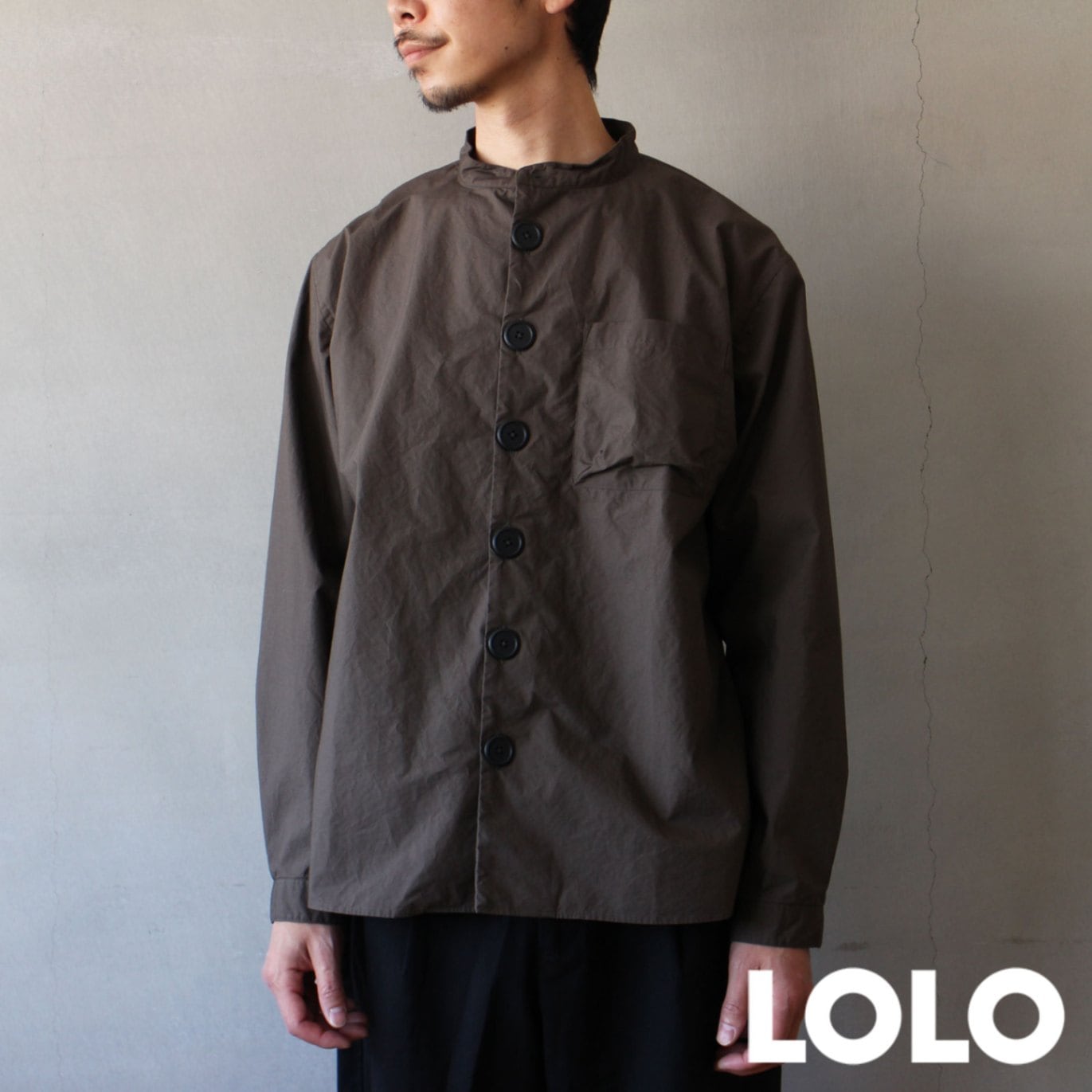 LOLO スタンドカラーデカボタンシャツ チャコール M/L/XL 長袖