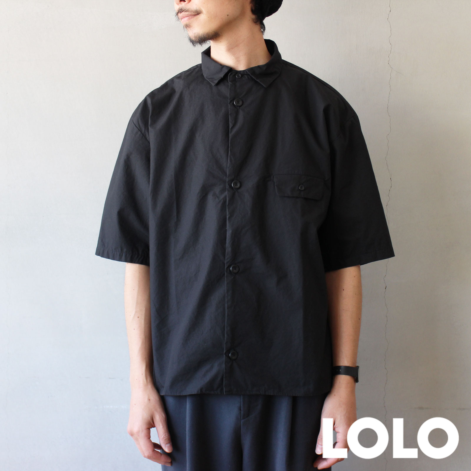LOLO ステッチなし半袖シャツ ブラック M/L/XL