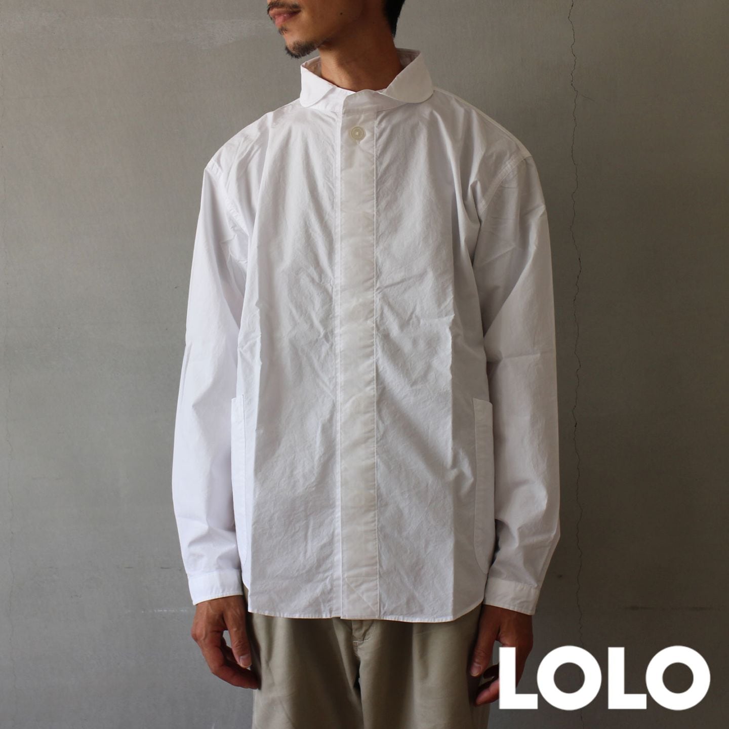 LOLO 定番プルオーバー型 前開き 比翼シャツ オフ M/L/XL