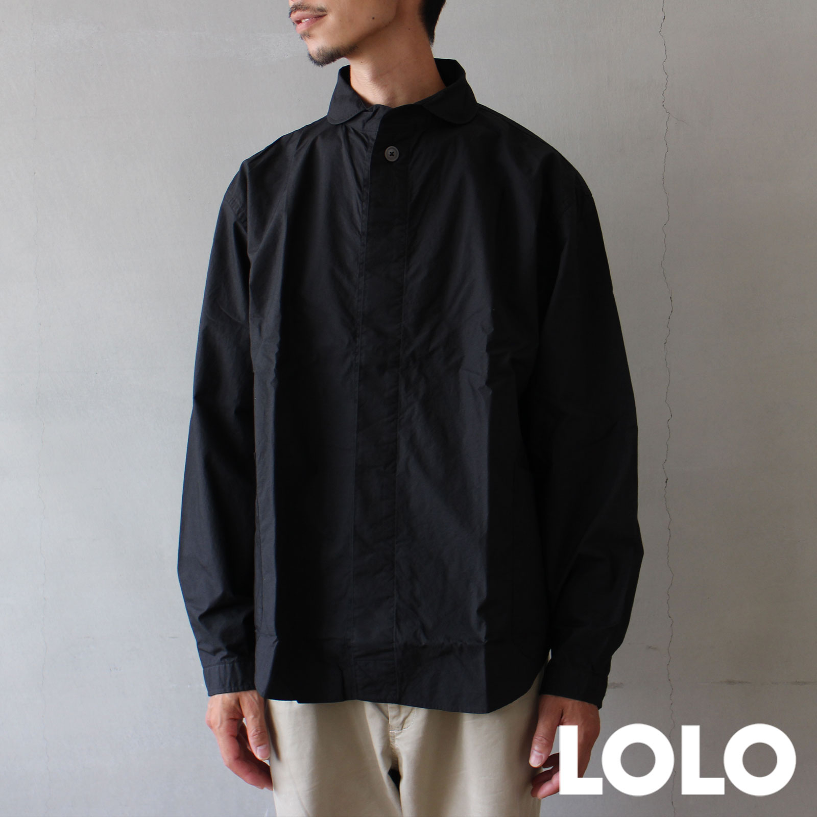 LOLO 定番プルオーバー型 前開き 比翼シャツ ブラック M/L/XL