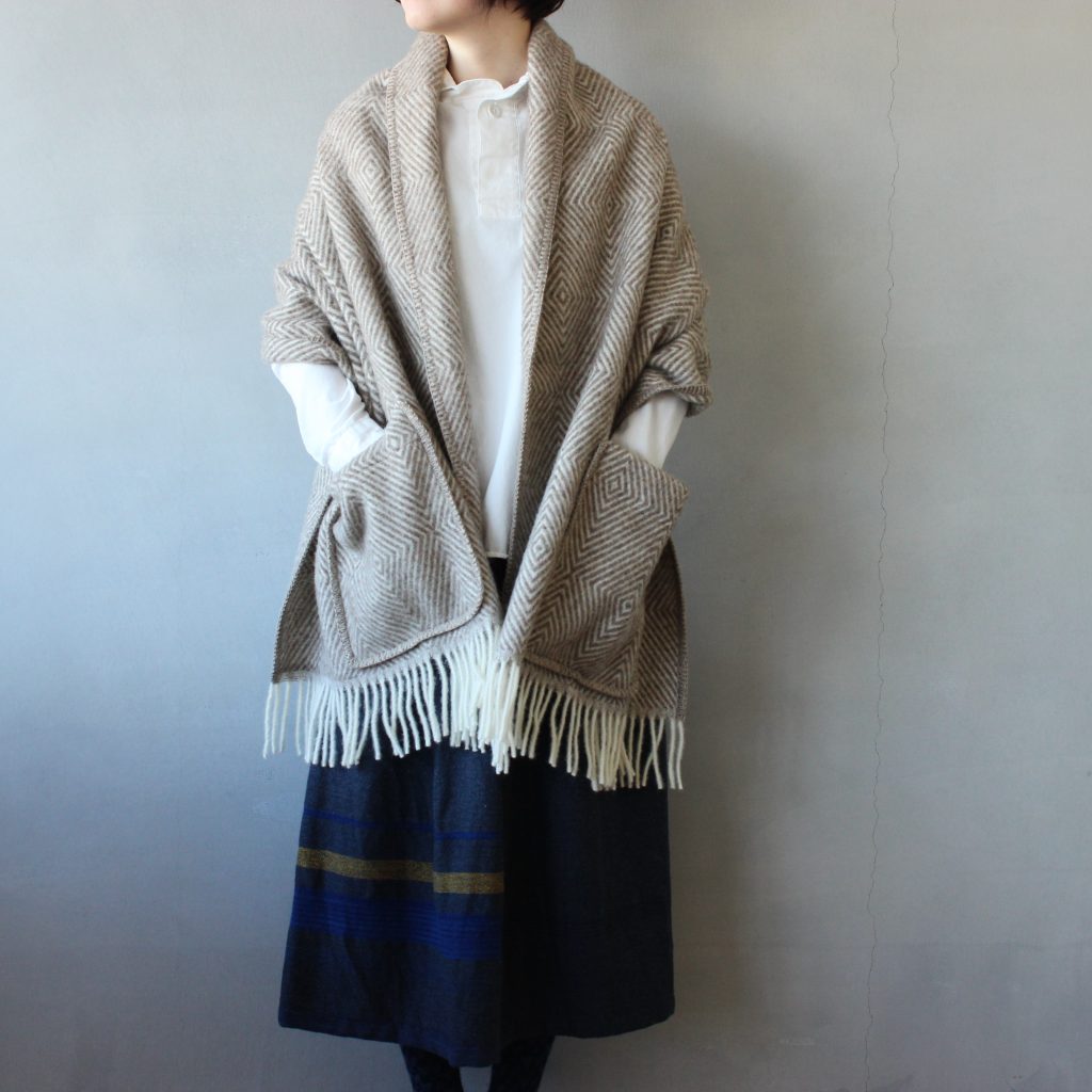 ポケット付きで心惹かれてつい手にとってしまうショール。