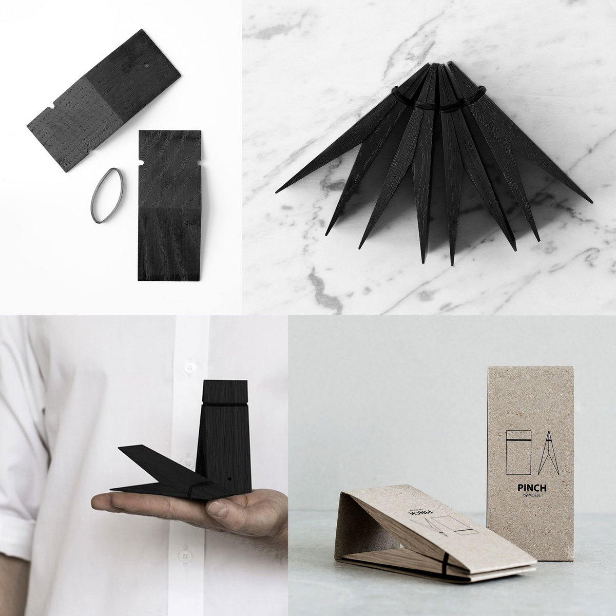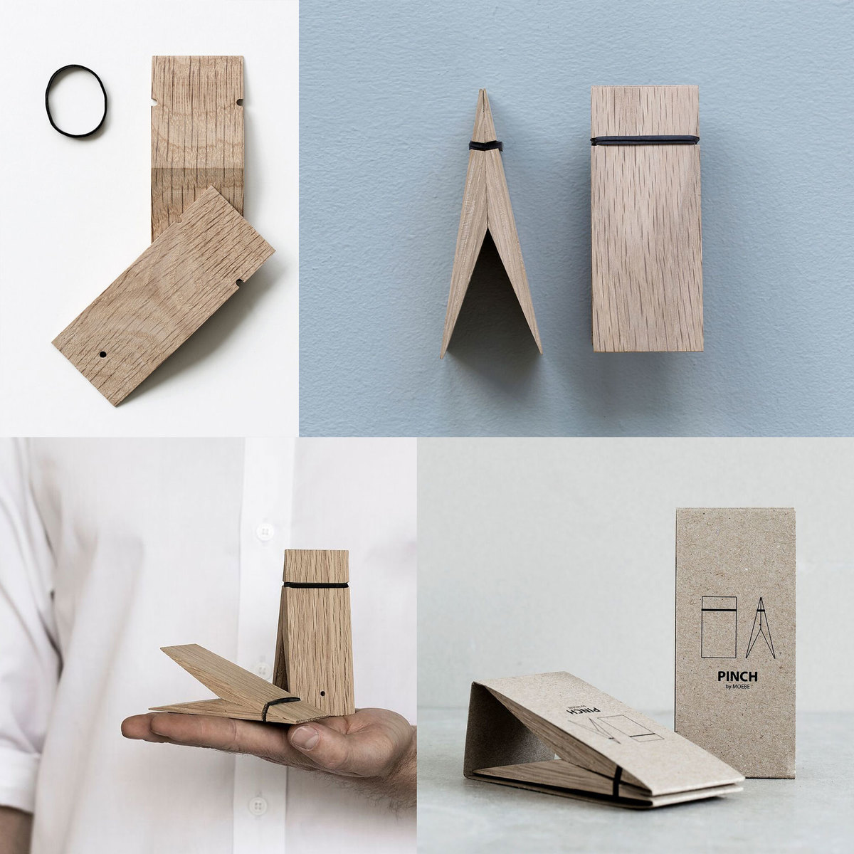 オーク無垢材とラバーバンドだけで作られている木製クリップ「PINCH」。
