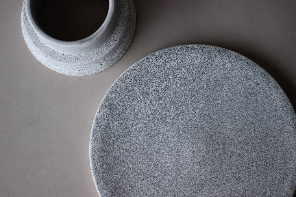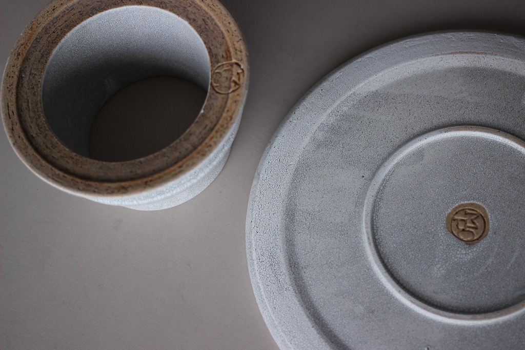 cake standの台座は梅花皮が分厚くかかる箇所が多いため、焼く前に梅花皮が剥がれたり取れることがありますが、釉薬をかけたのちは自然に剥がれることはないのでご安心ください。