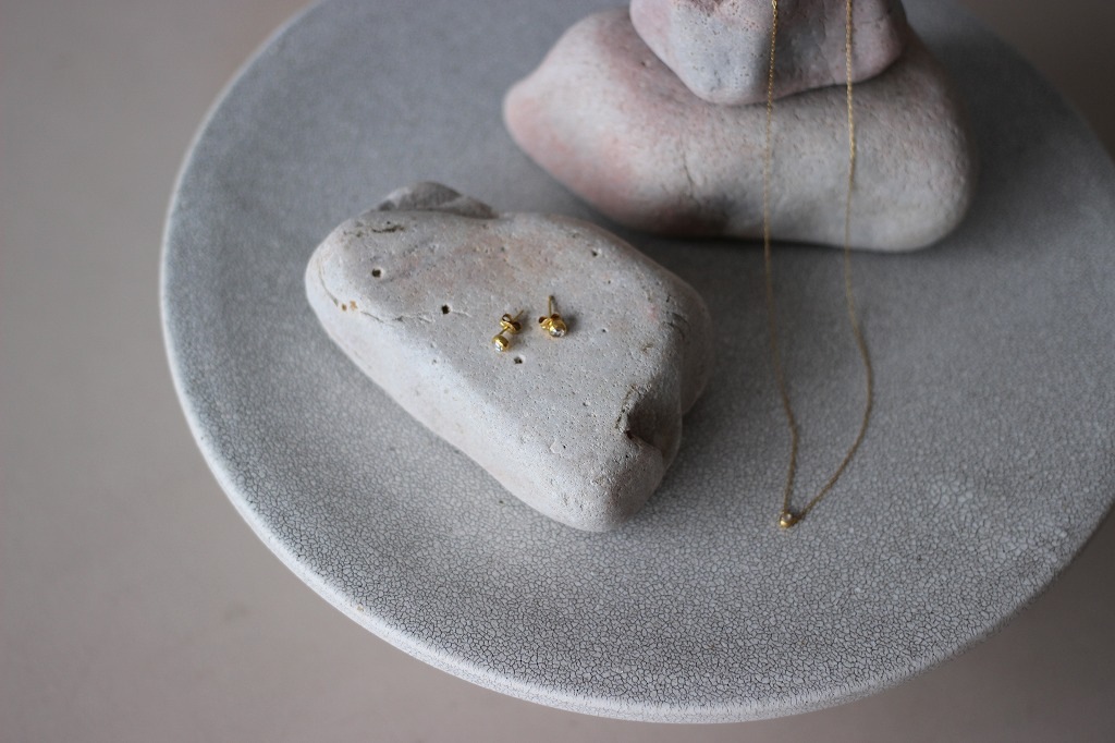 石が多く含まれた荒土は鉄分も多く、ところどころに鉄分の黒や茶の点が出たり、土に含まれる石粒が削りの過程で取れた穴や線が残ります。