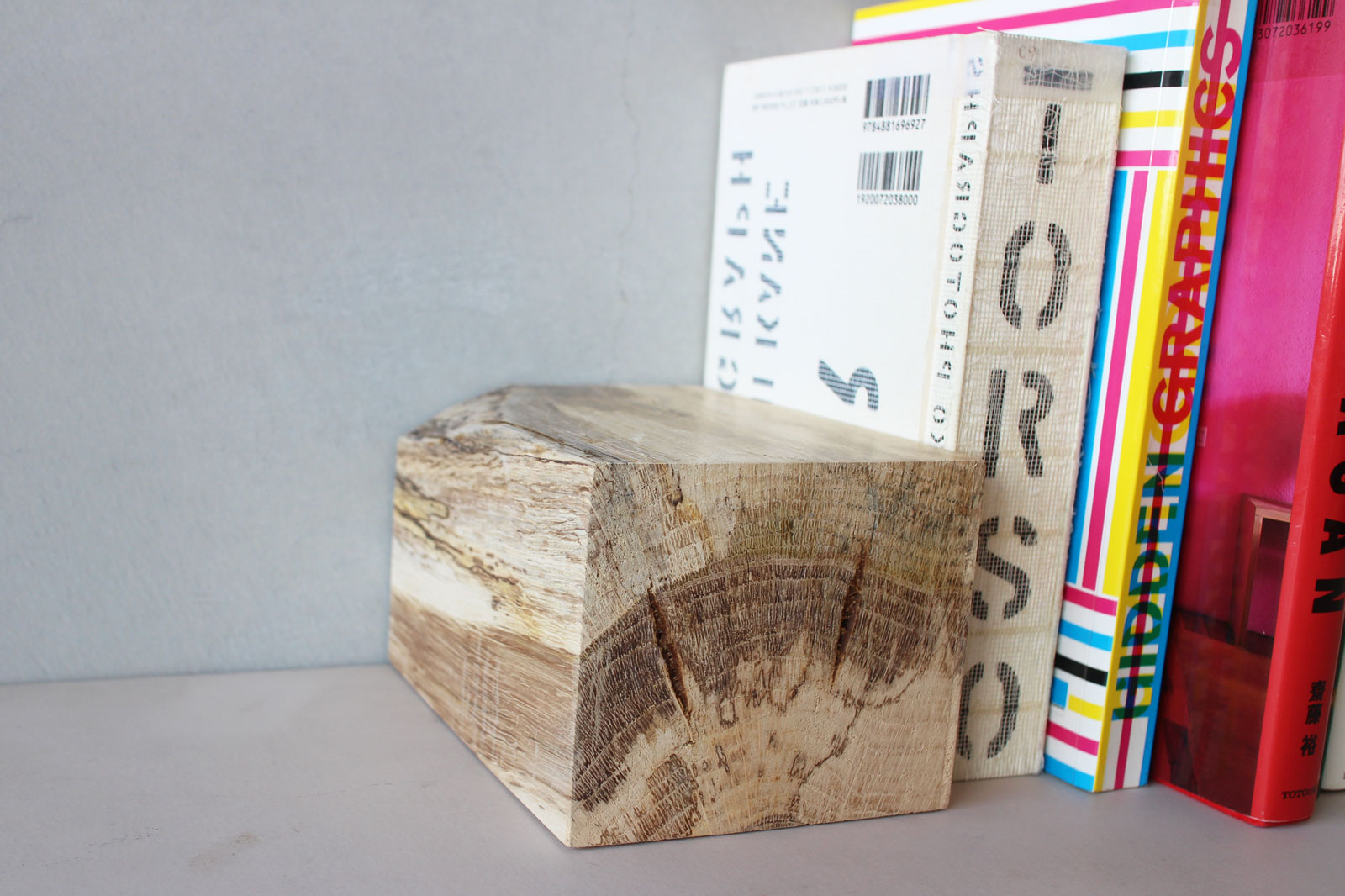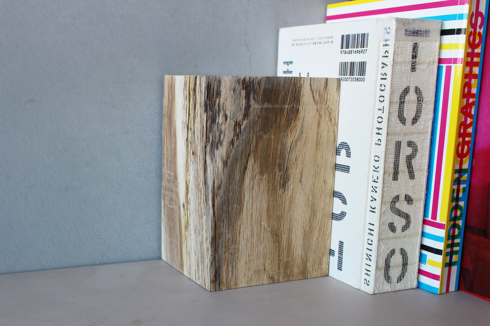 虫喰い楢でつくったブックエンドです。