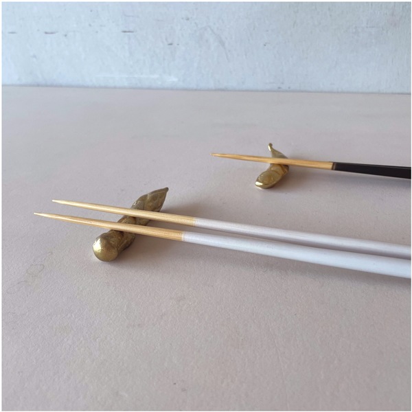 華やかな真鍮素材でアスパラガスの箸置きが出来上がりました。