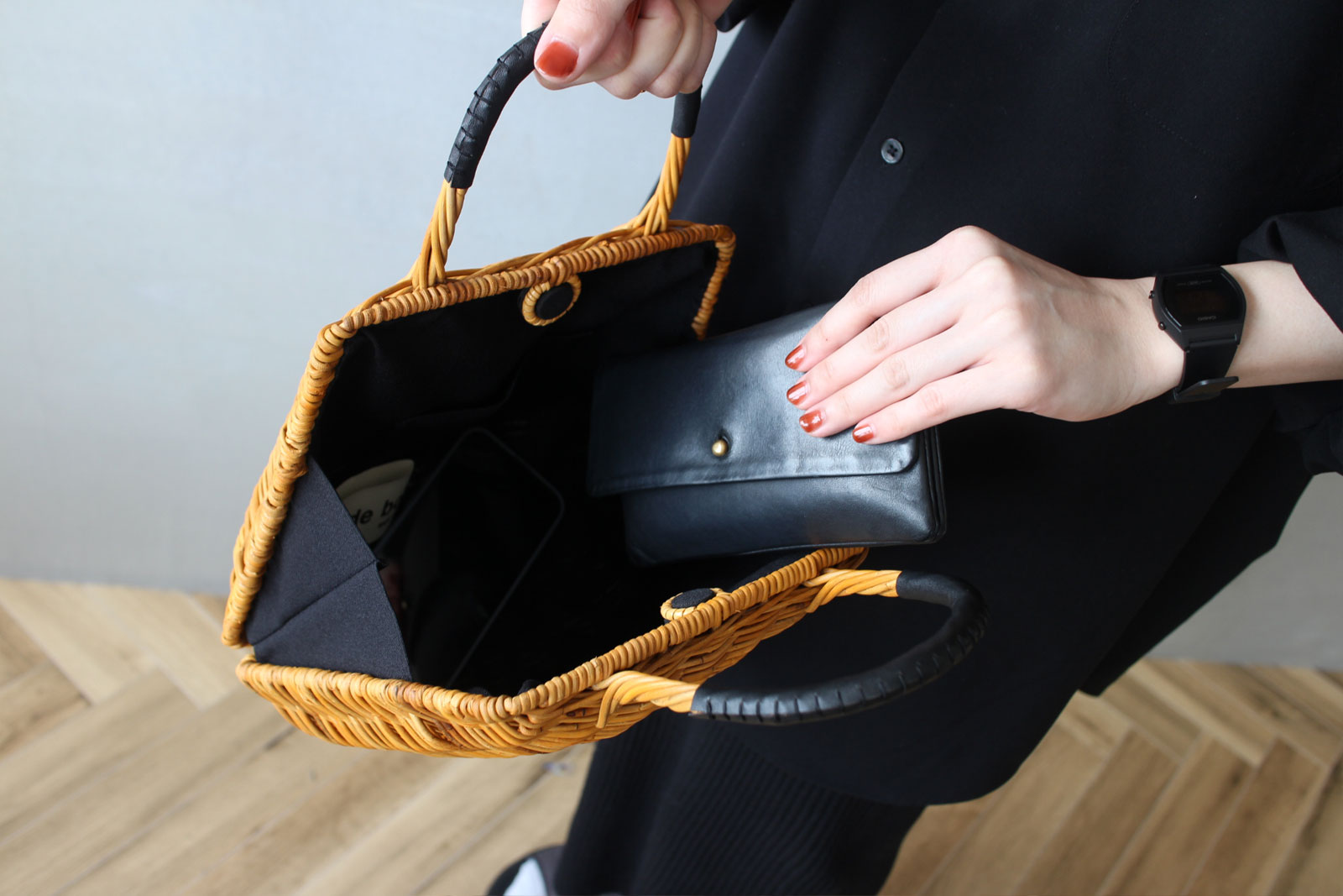 貝のようにふっくらと丸みのあるフォルムと、パカッと口が開くことから名前のつけられたかごバッグ。