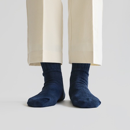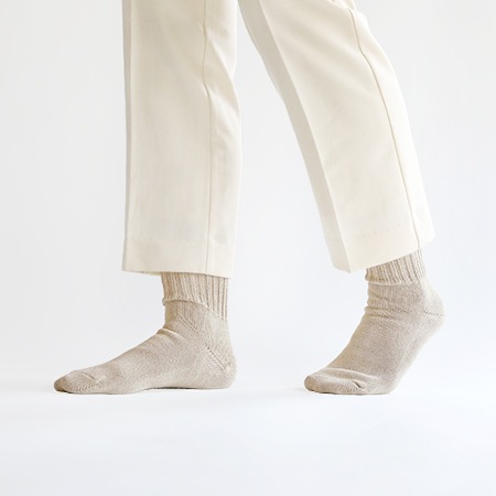 ざっくりとした編地でゆったりとしているため、ルームソックスにもおすすめです。ムレや汗によるべとつきがなく、しかも天然のくまざさ成分が菌の繁殖を抑えて、いつも清潔。