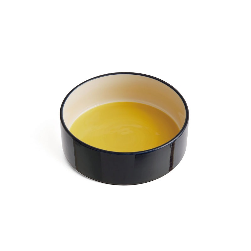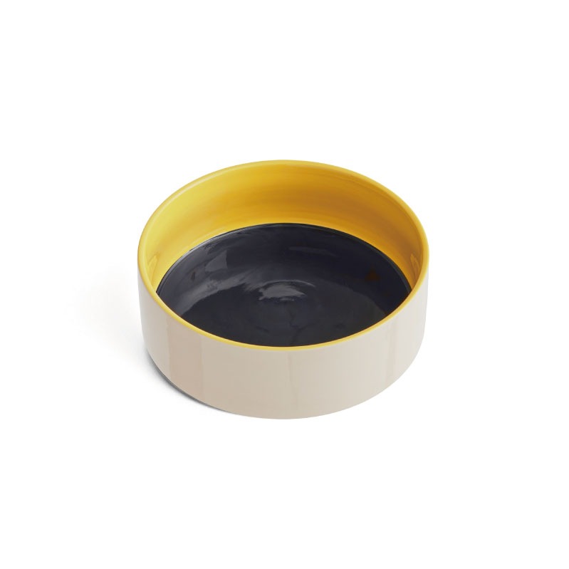 滑らないよう重さのある頑丈なせっ器を使用したこのボウルは、遊び心のある3色のデザインが特徴です。