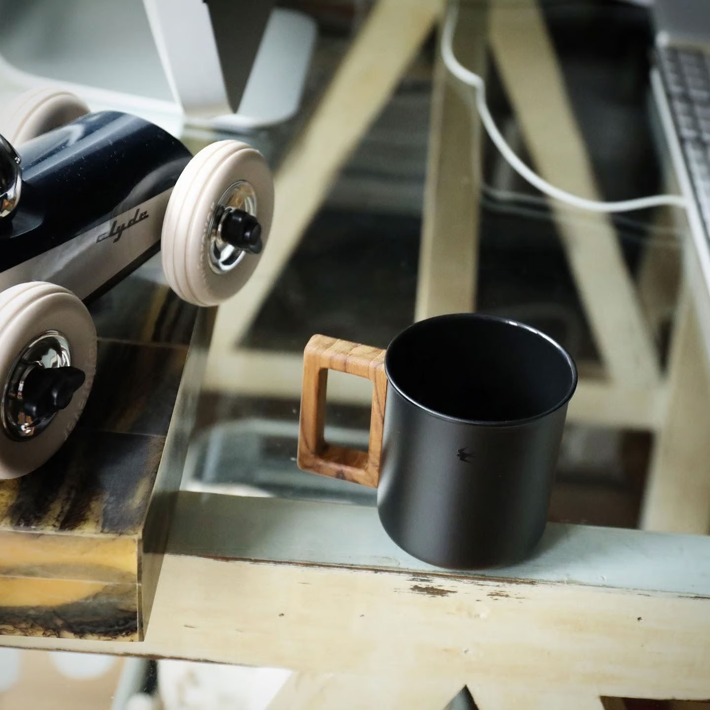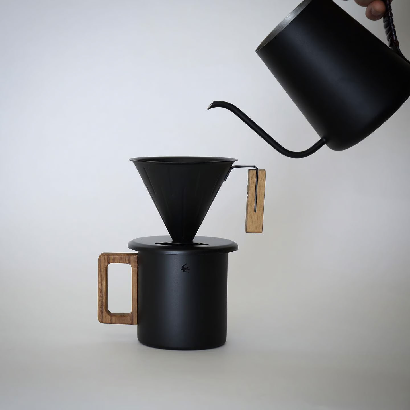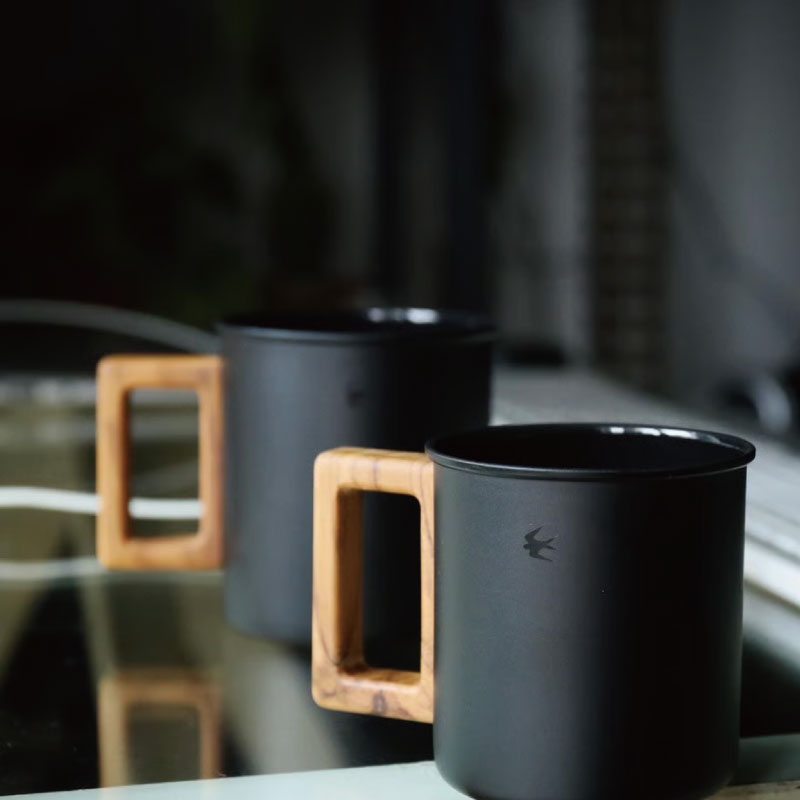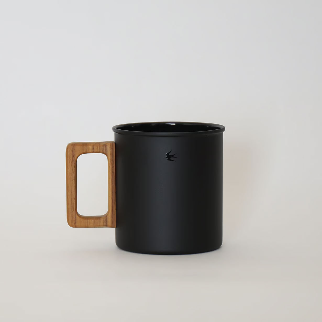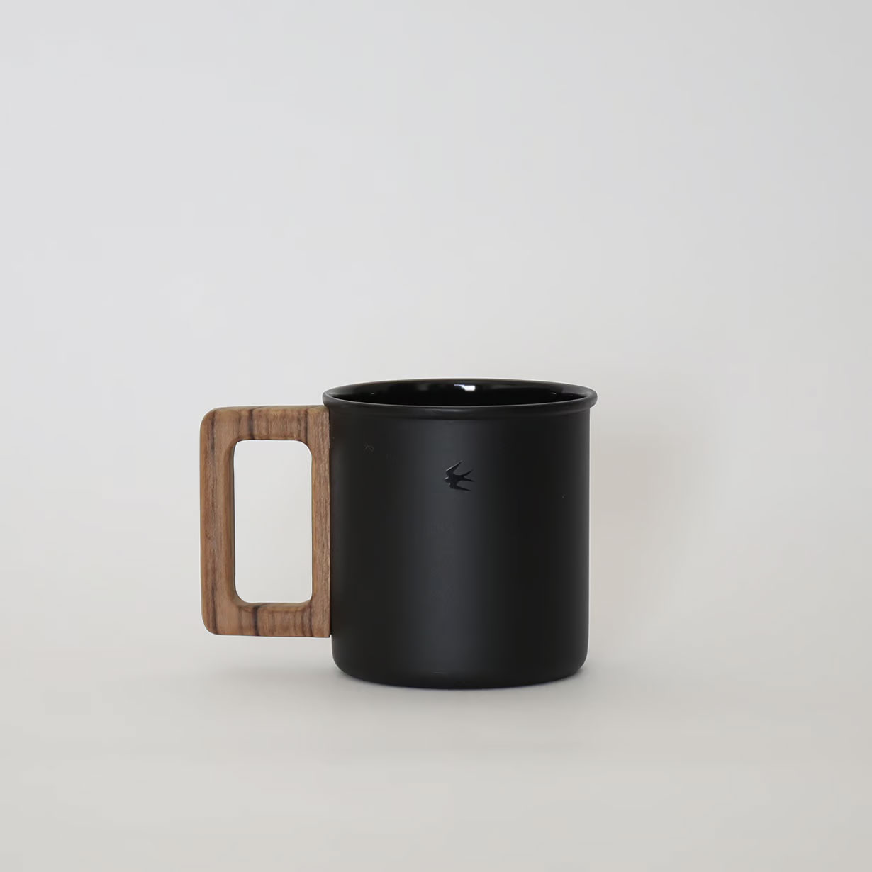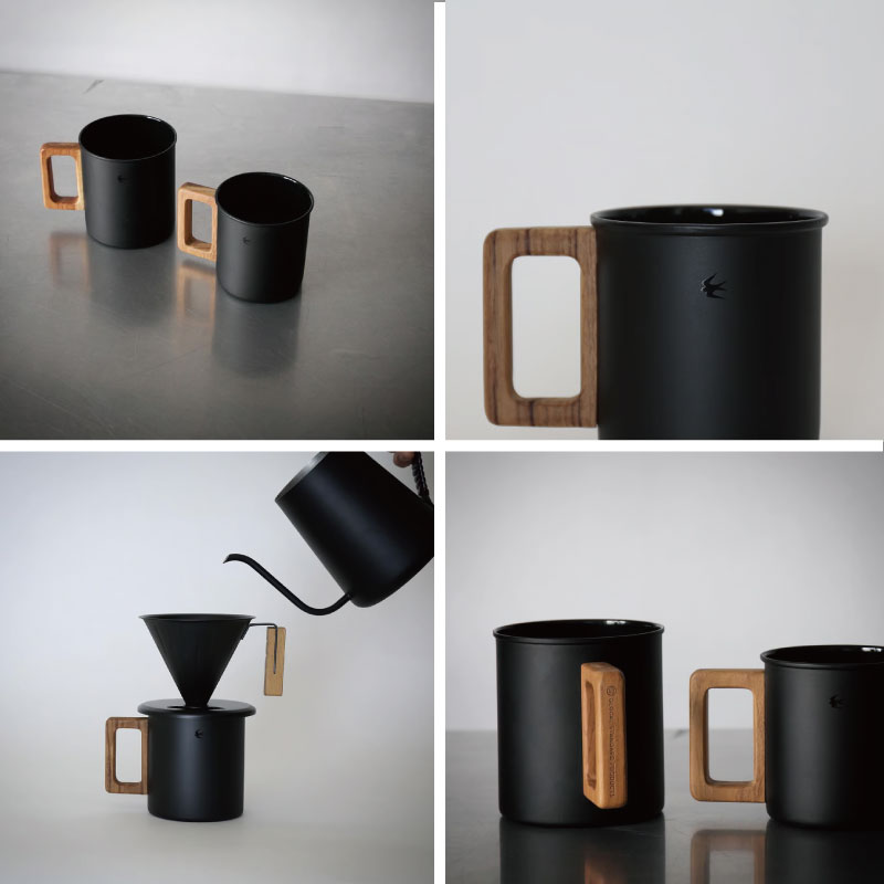 今回初めて試みた内側のみの琺瑯加工はとても珍しく、かつ難しい作業によって成り立っていますが、それでも内側の琺瑯にこだわったのは琺瑯がガラス質で無機質なことから飲料が金属の影響を受けず、本来の薫りと味を楽しめるようにと考えたからです。外側のマットボディには艶のある黒のツバメアイコンを配置。