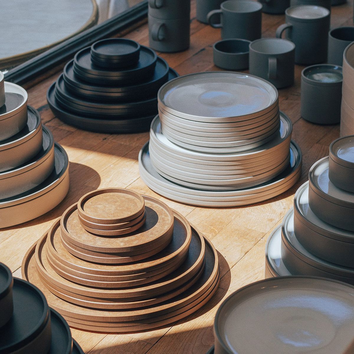 リッチライトは上質な再生紙に熱硬化性樹脂を染み込ませてつくられる素材で、汚れや水に強く衛生的。耐久性がありながら、紙が持つ自然な質感を失いません。