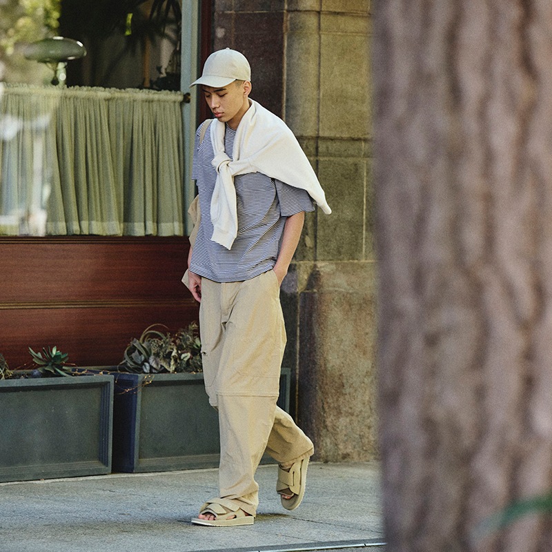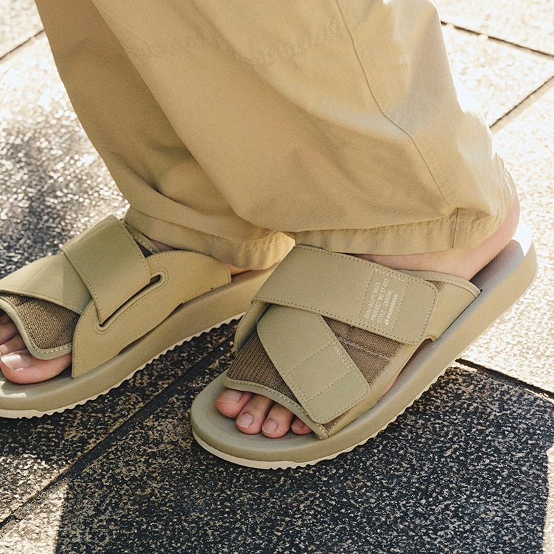 ユニバーサルデザインの心地良さをデイリーユースに。スポサンよりも気軽でフィッティングに優れた仕様。履く人に合わせた位置でベルトを固定できる簡潔な構造のサンダルタイプ。