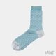 編み目模様をモチーフにした凹凸感が特徴のユニセックスサイズのソックス。柄で立体感を出した編み方をしております。そのため、足のサイズにより柄の立体感も変わります。男性が履くと、凹凸感がフラットに、女性が履くと立体的に柄が出ます。また、よく伸びる裏糸を使用しているため、ユニセックスでご使用できるサイズ感です。履きやすい通年素材です。