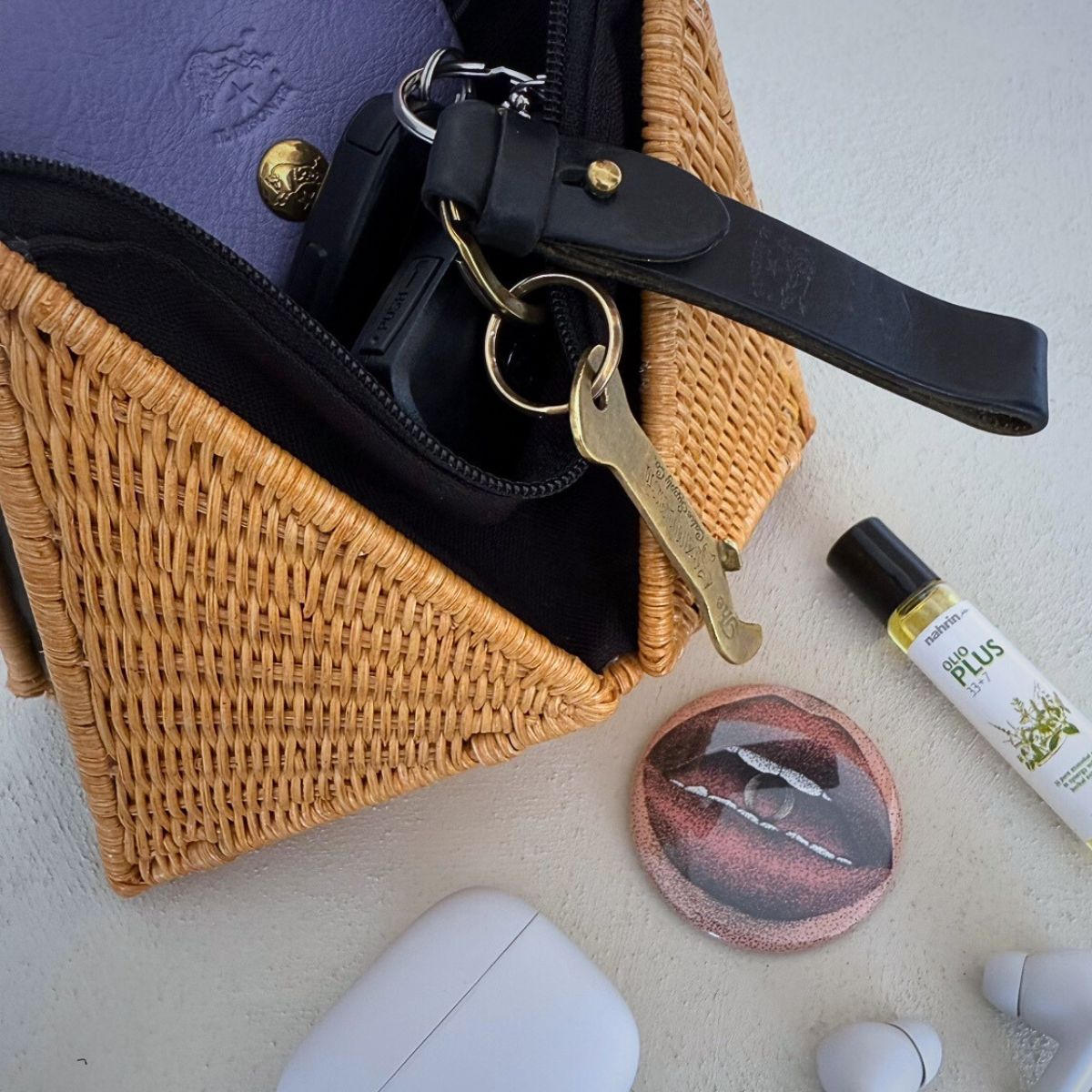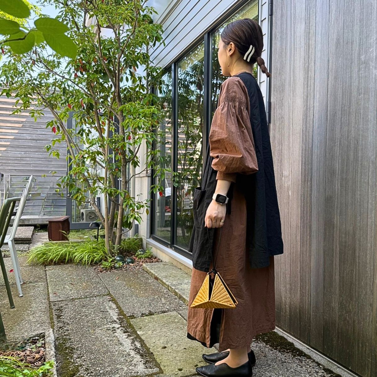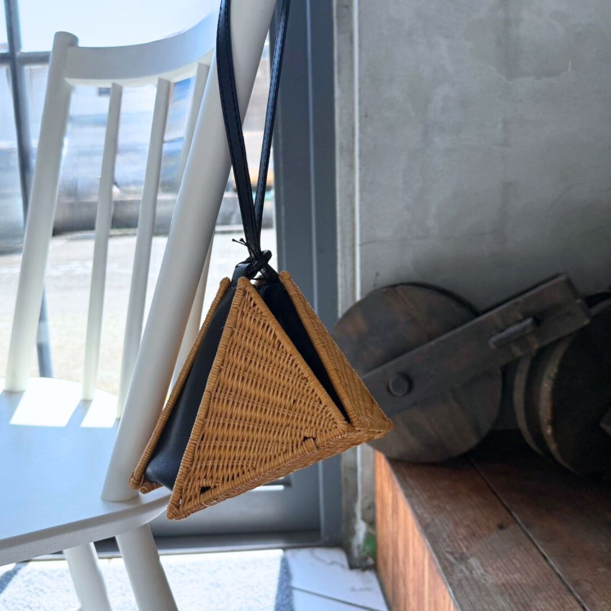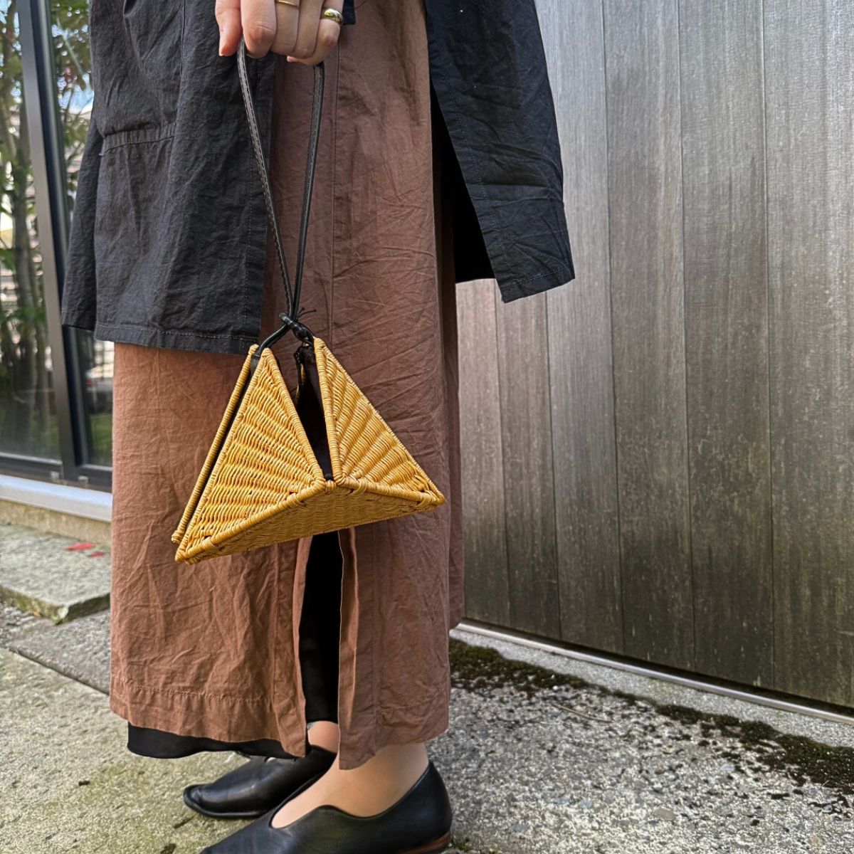 コロンとしたカゴのサンカクバッグです。普段使いはもちろん、浴衣にも合う小さめのバッグです。