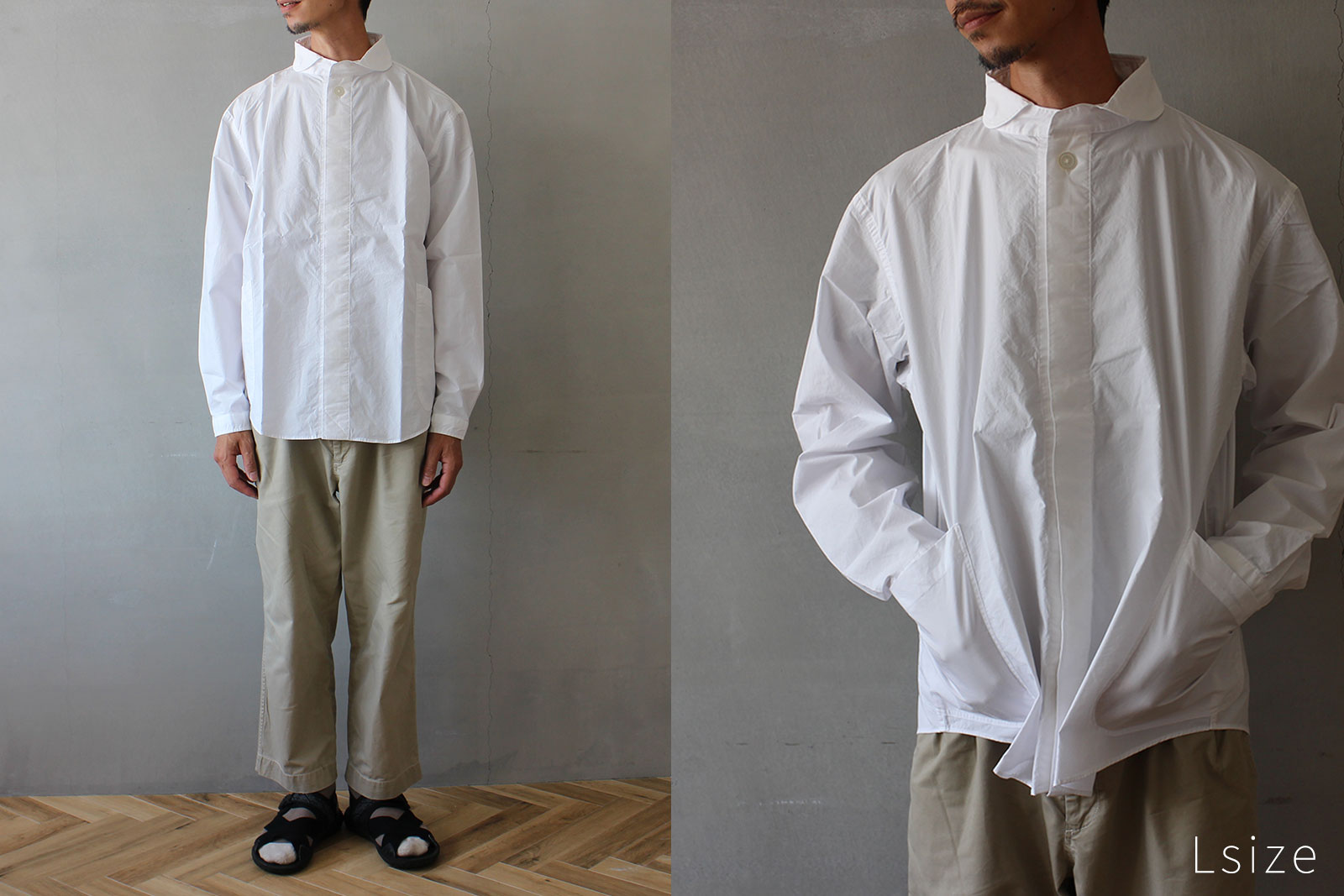 LOLO 定番プルオーバー型 前開き 比翼シャツ オフ M/L/XL