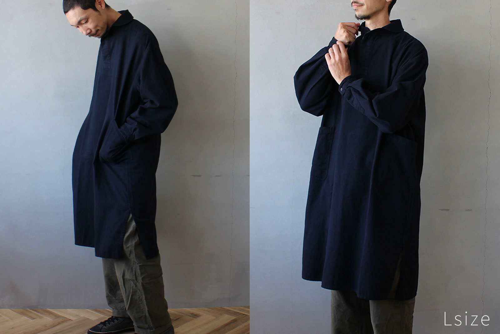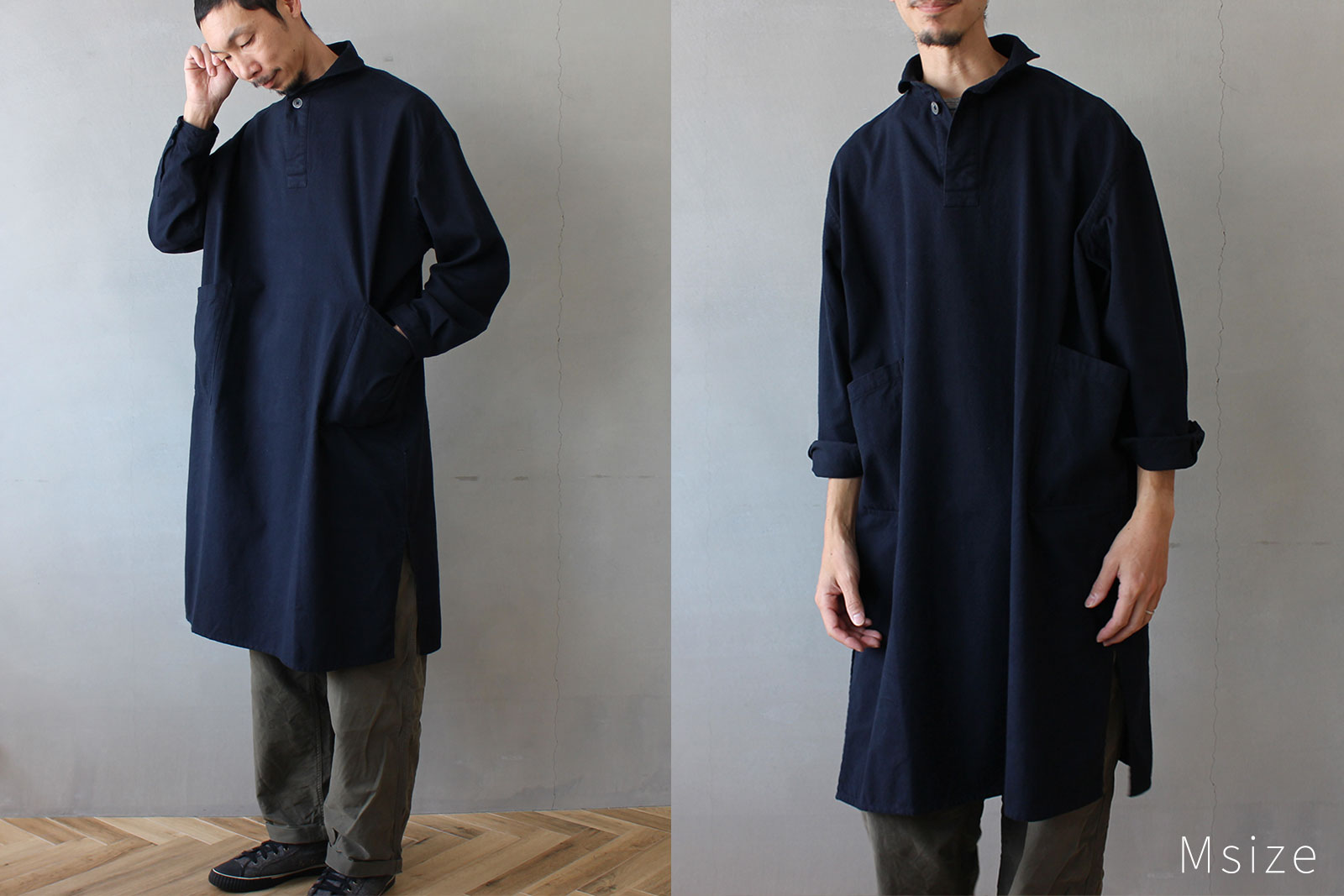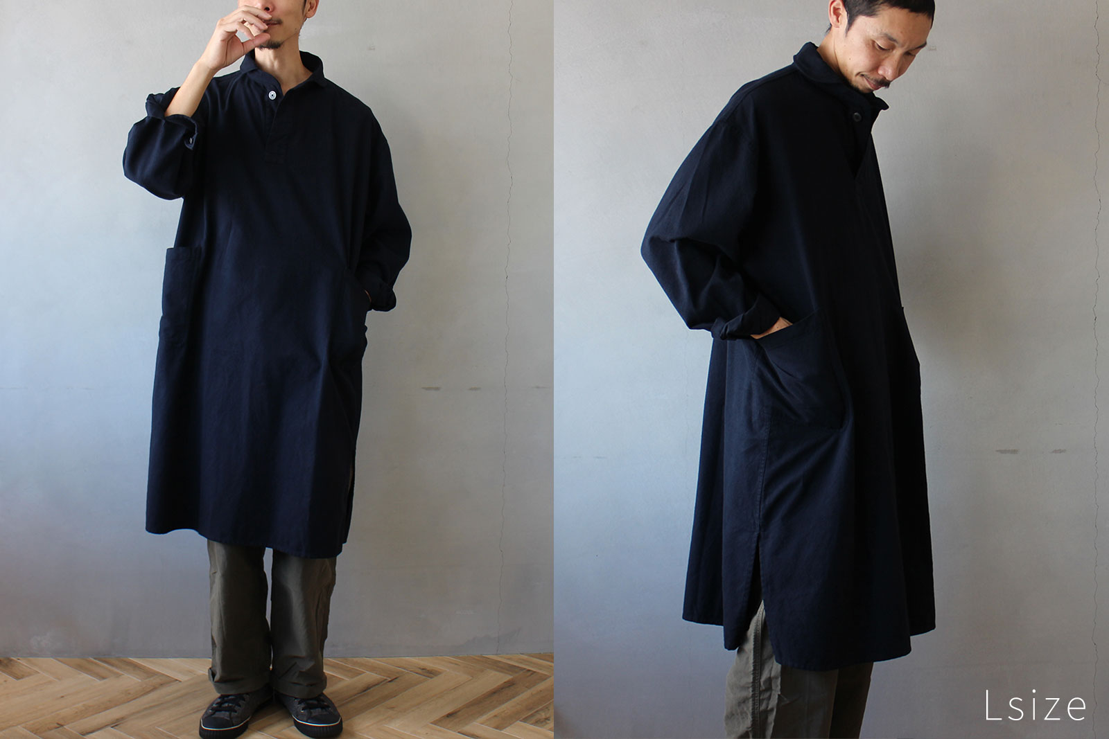 男性はロングシャツとして、女性はワンピースとしてもお使いいただけるアイテムです。