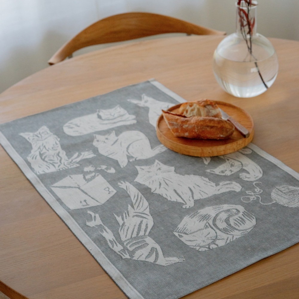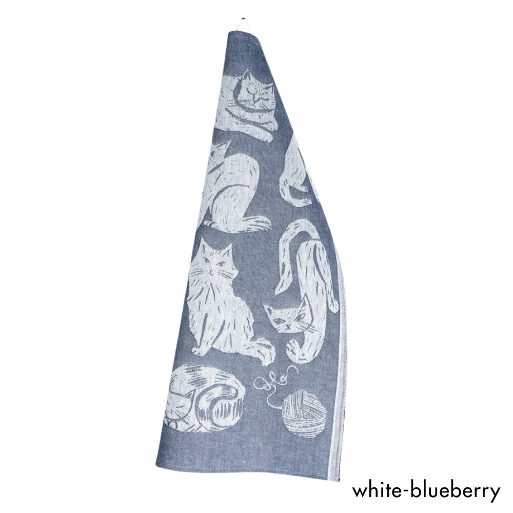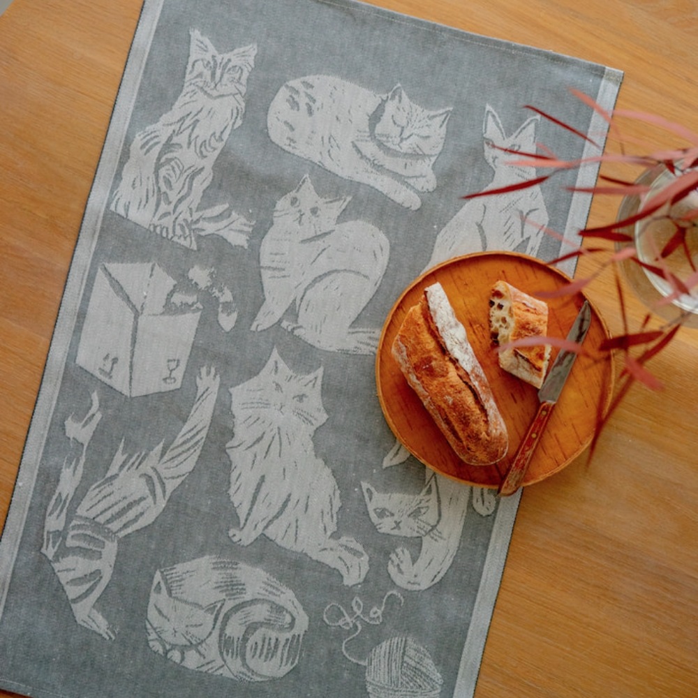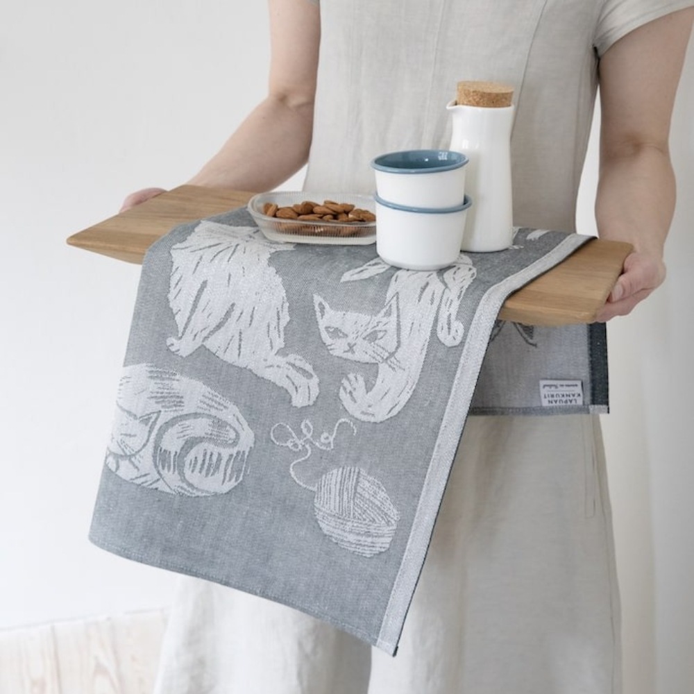 フィンランドのイラストレーター、マッティ・ピックヤムサが描くどこかマイペースで親しみやすい絵が織られたKISSANPAIVAT(キッサンパイヴァット)のキッチンタオル。のんびりと気ままに過ごす、猫たちが描かれたリネンタオル。