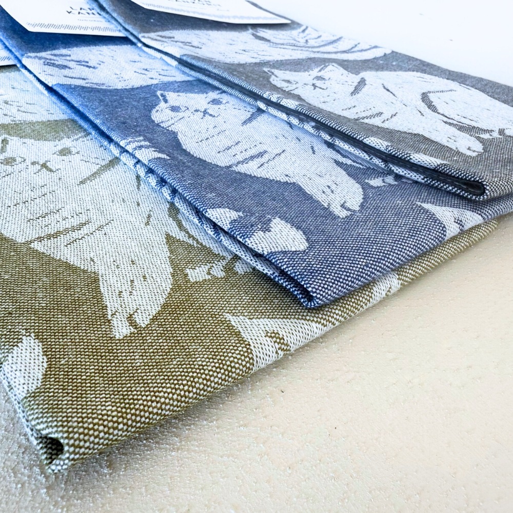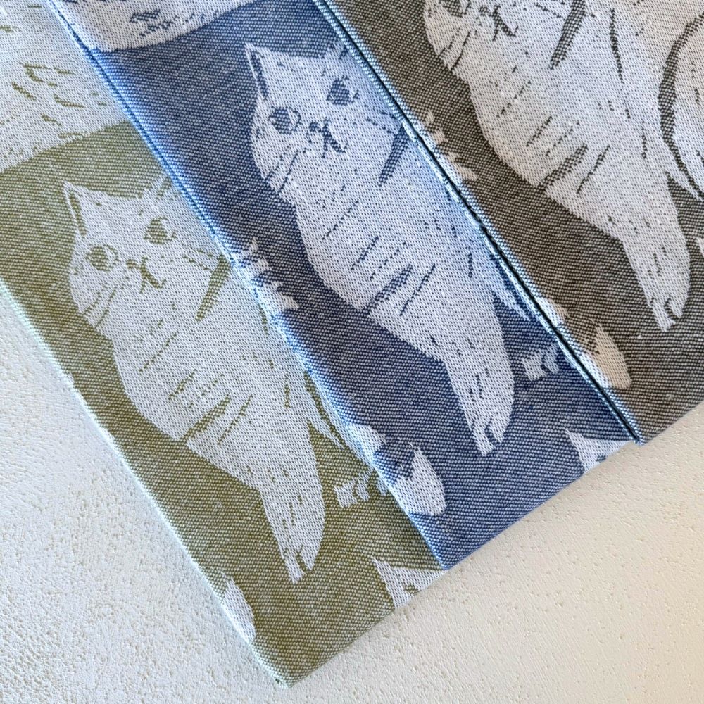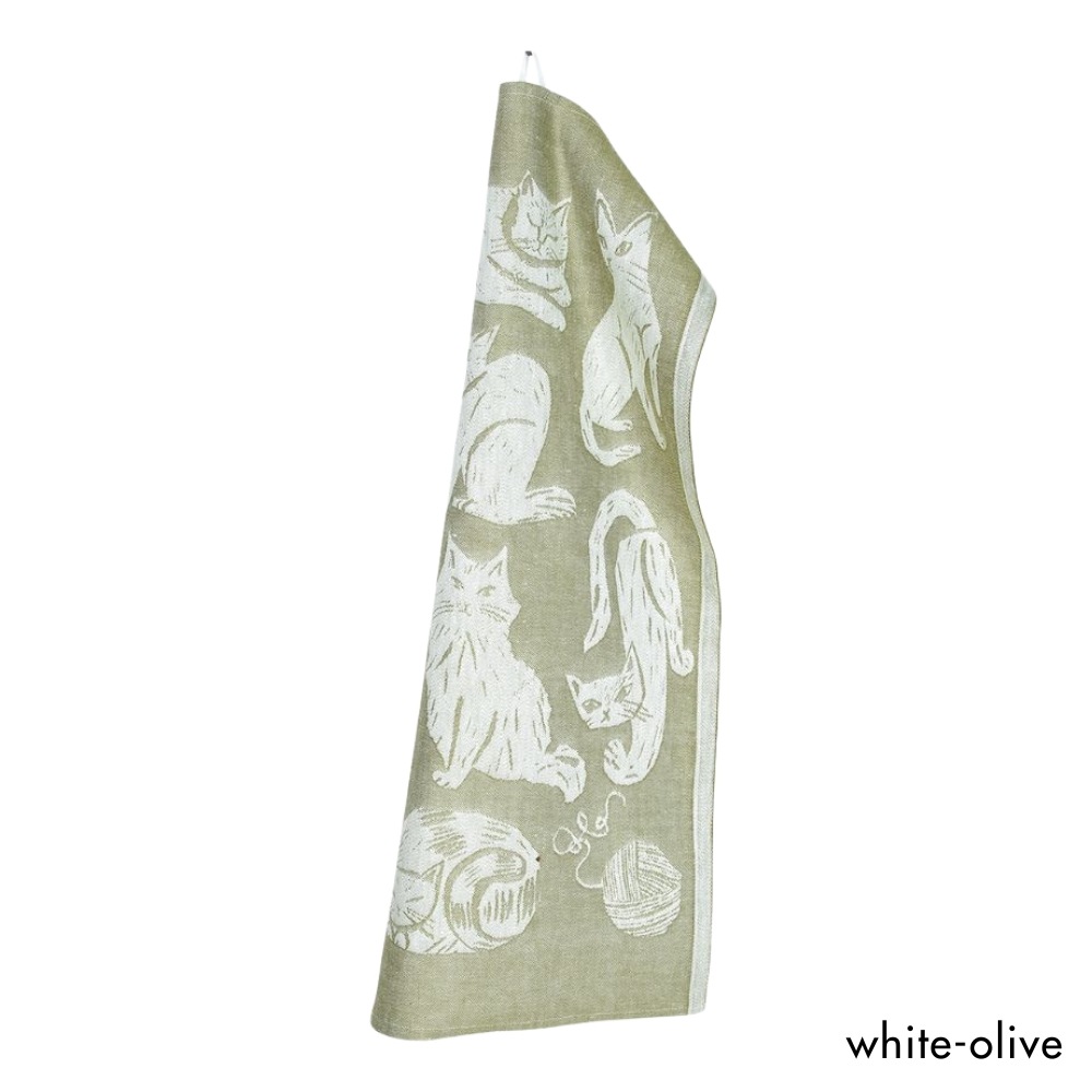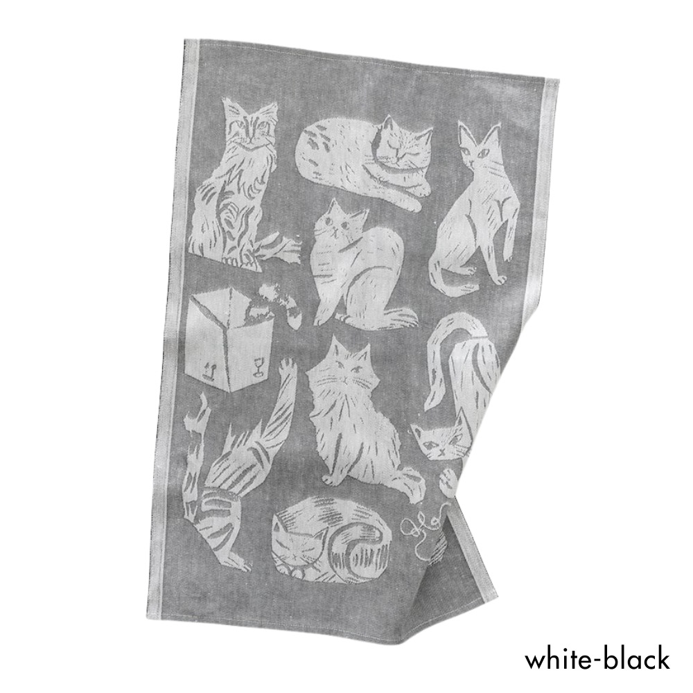 フィンランドのイラストレーター、マッティ・ピックヤムサが描くどこかマイペースで親しみやすい絵が織られたKISSANPAIVAT(キッサンパイヴァット)のキッチンタオル。のんびりと気ままに過ごす、猫たちが描かれたリネンタオル。